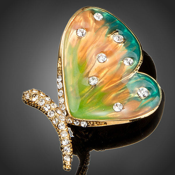 Pozlátená brošňa s motýľom a drobnými zirkónmi Vám vyčarí úsmev na tvári. Antialergické.