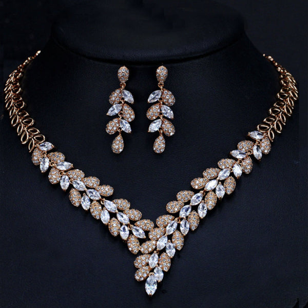 Nádherný žiarivý set s ružovými lístkami, v ktorých sú vsadené drobne číre zirkóniky špeciálnou technikou micropace doplnený čírymi zirkónmi s diamantovým odleskom v ladnom tvare krásne zapadne do dekoltu. Vďaka kvalitnej galvanizácii 3 vrstvou ružového zlata si zachováva dlhotrvajúci lesk a jas.Skvost, ktorý očarí. Zachováva si dlhotrvajúci lesk a jas. Bez obsahu niklu, olova, kadmia. Antialergické.