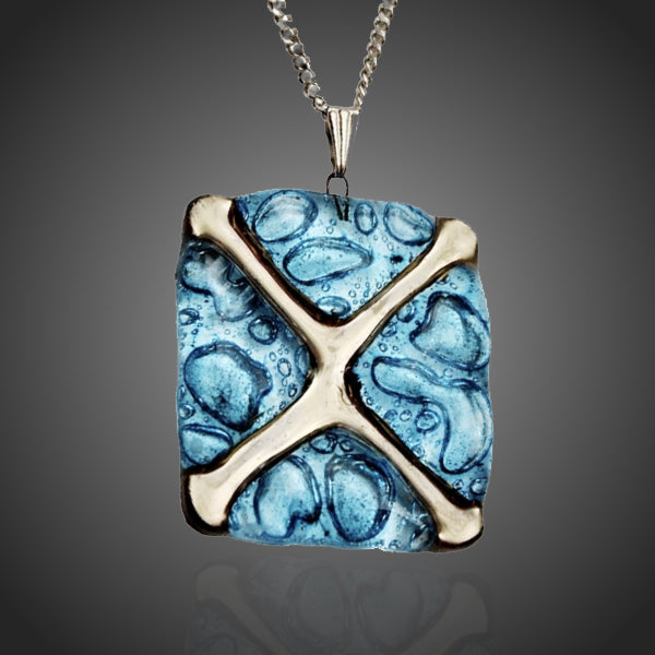 Nádherný originálny náhrdelník v tyrkysovom prevedení s unikátnym bublinkovým dizajnom odolného skla zdobeného pravou platinou. Antialergické. Vhodný na bežné nosenie aj na spoločenské udalosti.