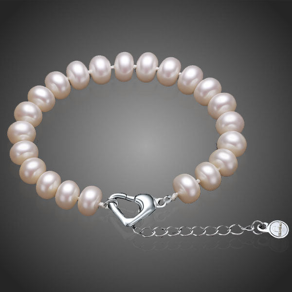 Náramok s bielymi riečnymi perlami Vám zjemní rúčku. Ich jemná, krémovo-biela farba nádherne vynikne na pokožke a pôsobí čisto, žensky a nadčasovo. Zapínanie si vďaka galvanizácii platinou zachováva dlhotrvajúci lesk a jas. Antialergické.