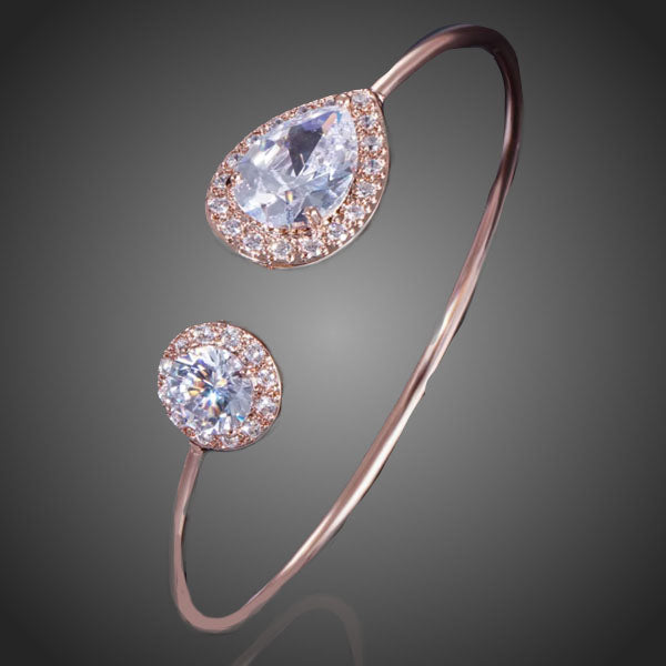 Krásny dámsky náramok s ladnými kvapkami vykladaný žiarivými čírymi zirkónmi sa stane obľúbeným doplnkom. Vďaka kvalitnej galavnizácii 3 vrstvou ružového zlata si zachováva si dlhotrvajúci lesk a jas. Bez obsahu niklu, olova, kadmia. Antialergické.