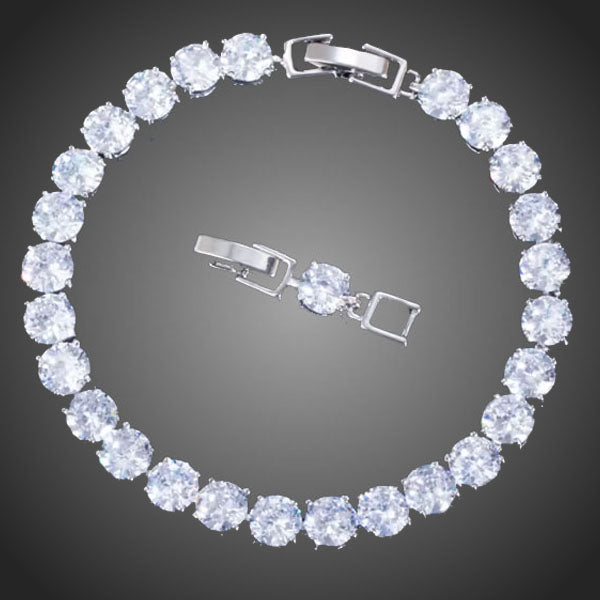 Žiarivý dámsky ladný náramok vykladaný čírymi zirkónmi sa stane efektným doplnkom. Súčasťou je aj 2,5 cm predĺženie na treťom obrázku, ktoré môžete použiť. Vďaka kvalitnej galavnizácii 3 vrstvou bieleho zlata si zachováva si dlhotrvajúci lesk a jas. Bez obsahu niklu, olova, kadmia. Antialergické.