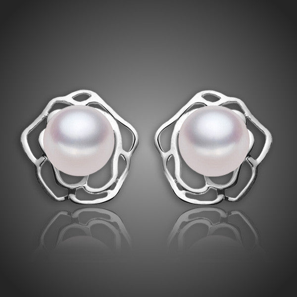 Kvetinové náušnice s bielou riečnou perlou podčiarknu Vašu ženskosť a jemnosť. Vďaka galvanizácii platinou si zachováva dlhotrvajúci lesk a jas. Bez obsahu niklu, olova, kadmia. Antialergické.