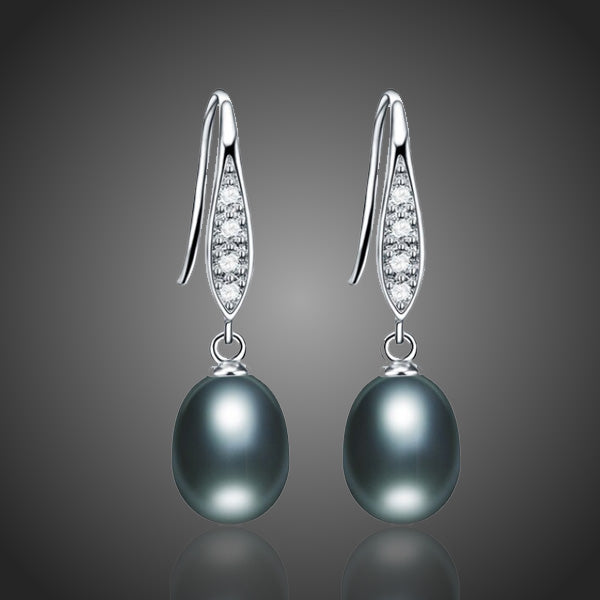 Elegantné visiace náušnice s čiernymi riečnymi perlami doplnené čírymi zirkónmi. Vďaka galvanizácii platinou si zachováva dlhotrvajúci lesk a jas. Bez obsahu niklu, olova, kadmia. Antialergické.