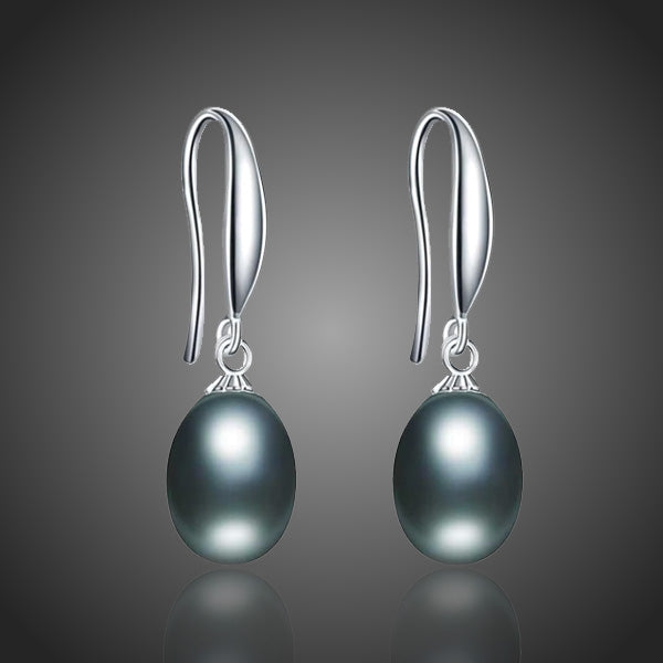 Elegantné visiace náušnice s čiernymi s riečnymi perlami. Vďaka galvanizácii platinou si zachováva dlhotrvajúci lesk a jas. Bez obsahu niklu, olova, kadmia. Antialergické.