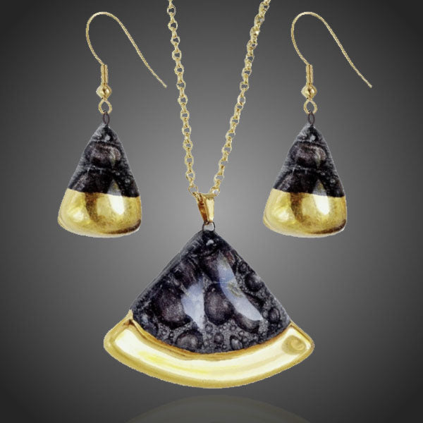 Nádherný set v hnedom prevedení s unikátnym bublinkovým dizajnom hnedého maľovaného odolného skla zdobeného pravou platinou. Antialergické.Vhodný na bežné nosenie aj na spoločenské udalosti.