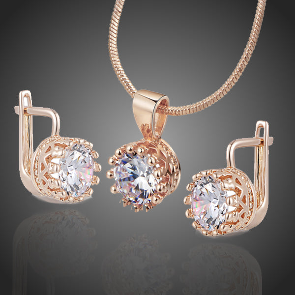 Set s pevnou retiazkou a žiarivými čírymi zirkónmi sa stane Vašim elegantným doplnkom. Trendy farba ružového zlata Vás poláska. Vďaka kvalitnej galvanizácii si zachováva dlhotrvajúci lesk a jas. Bez obsahu niklu, olova, kadmia. Antialergické.